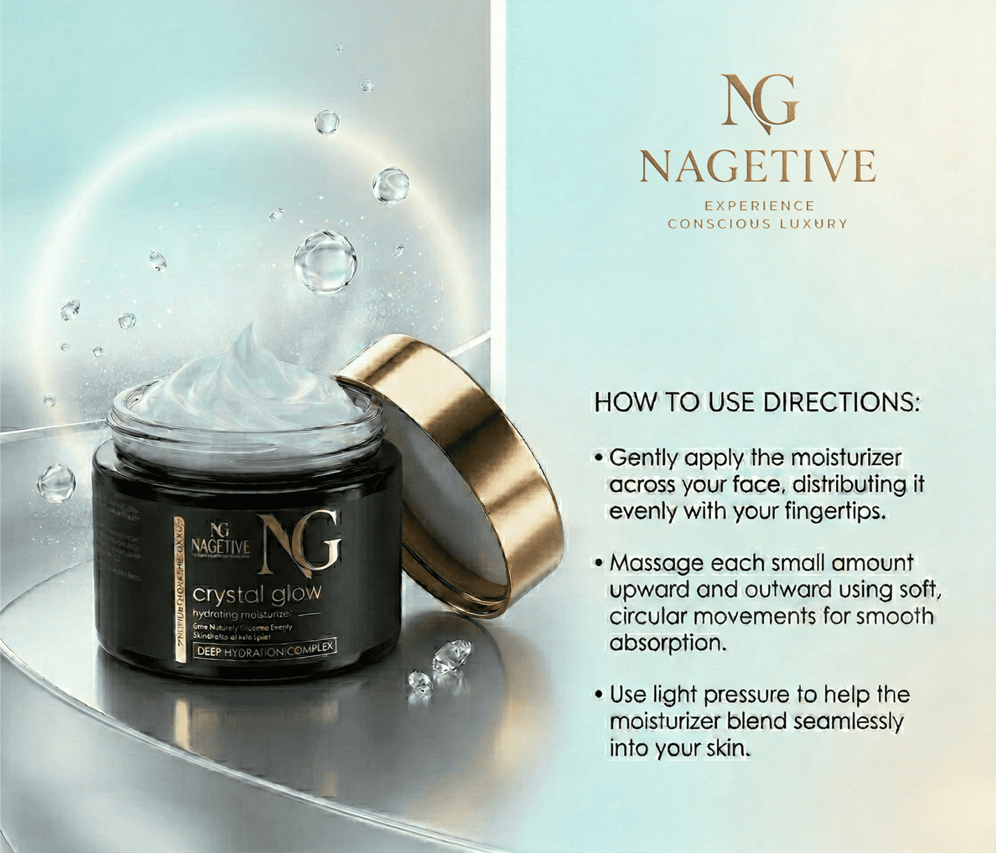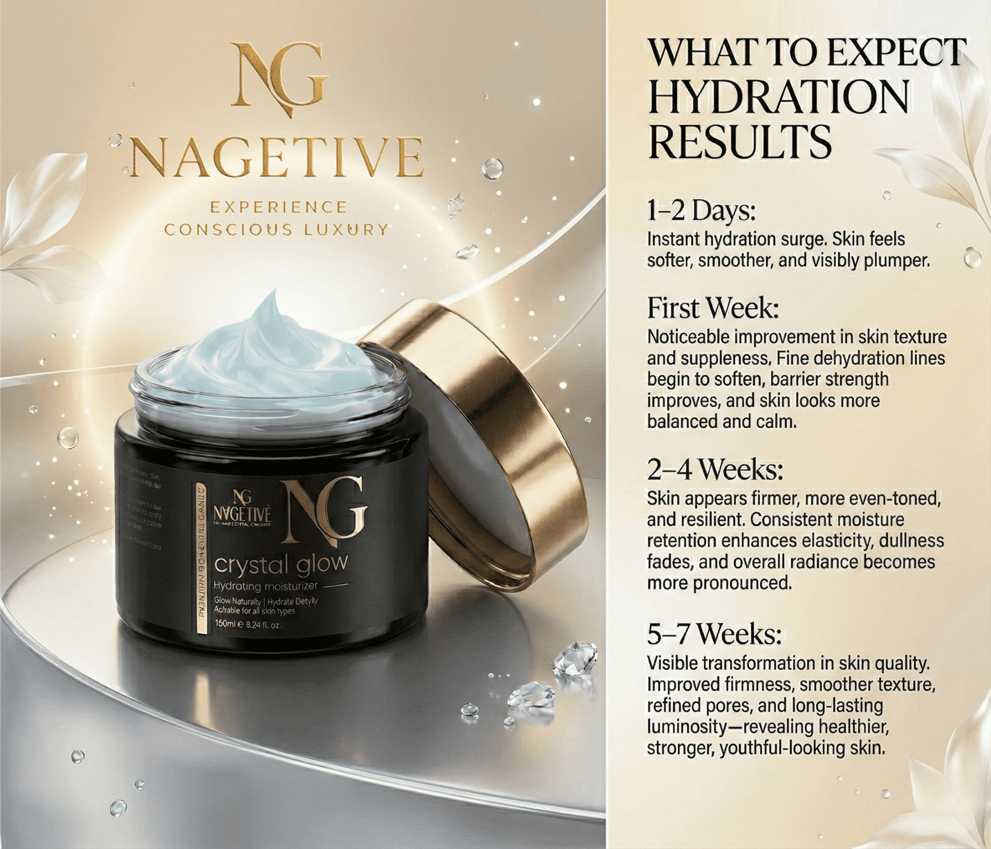 Introducing Nagetive Crystal Glow Hydrating Moisturizer—a new generation lightweight hydrator designed to deeply nourish, restore, and illuminate your skin with effortless elegance.