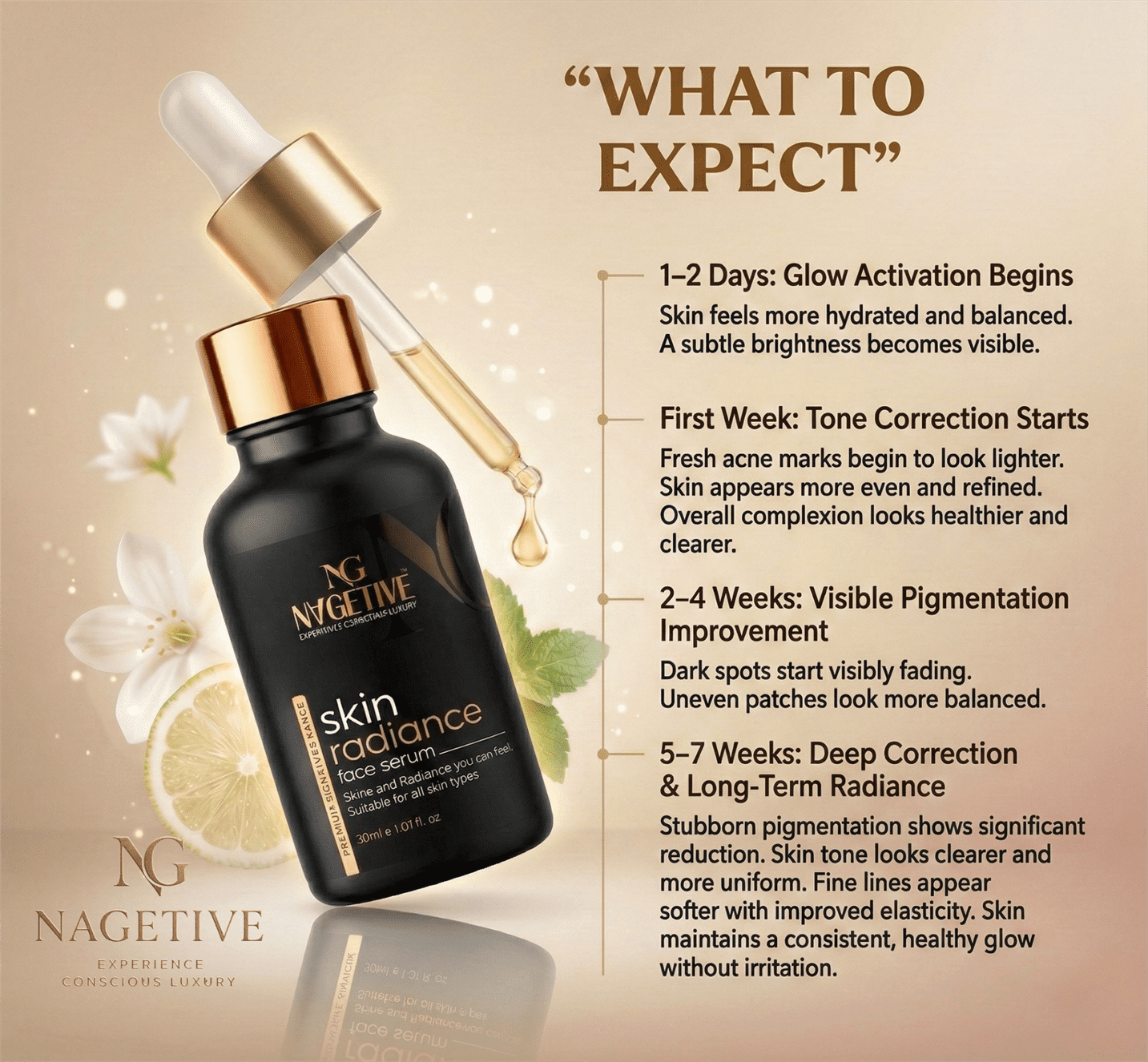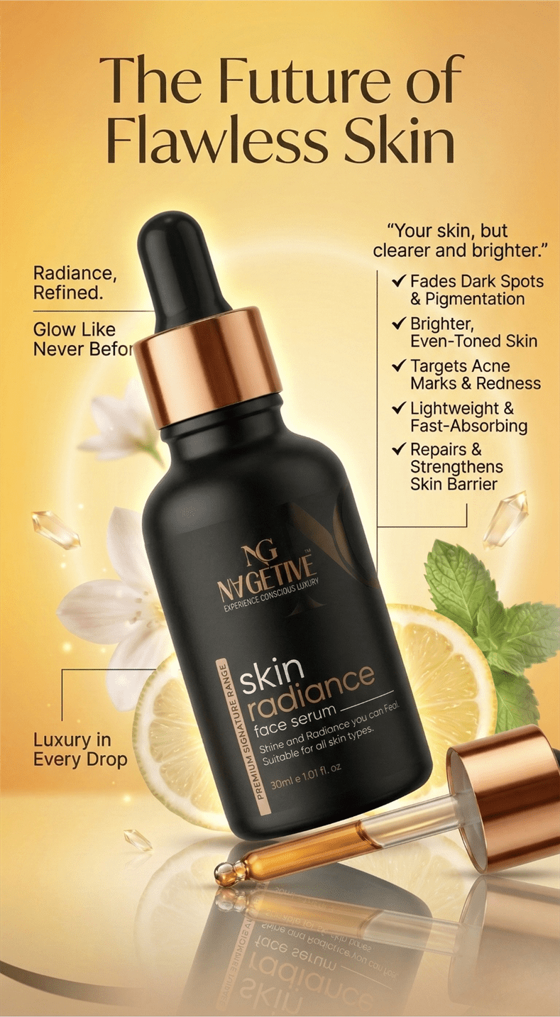 Introducing the future of luminous skincare — Nagetive Skin Radiance Serum, an advanced complexion-enhancing formula designed to brighten, refine, and elevate your skin’s natural glow every day.